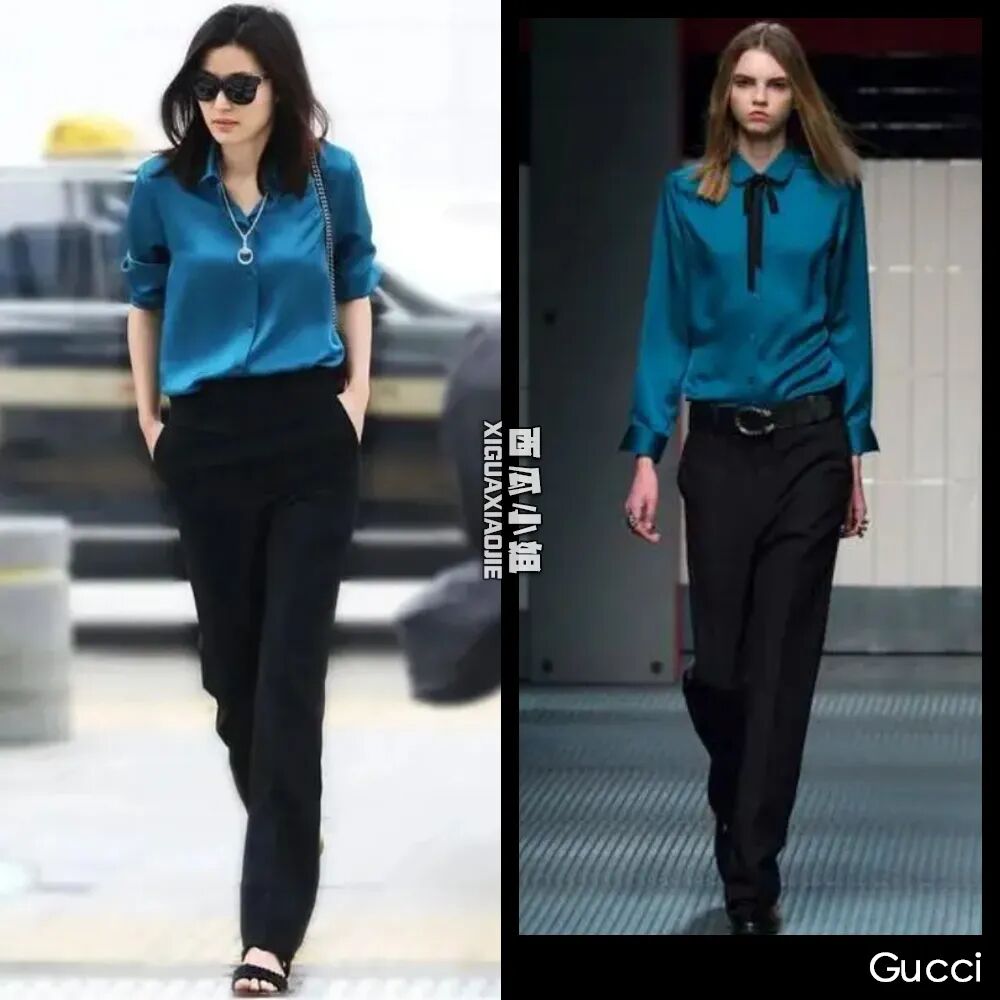 这一身孔雀蓝缎面衬衫,不管什么时候看,都是直击人心的经典造型。