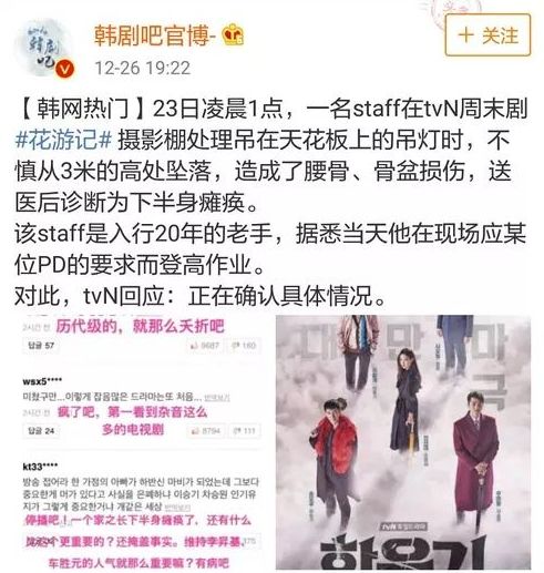本来这事儿就够糟心了吧?结果没几天又出了严重的拍摄事故:一名工作人员在剧组里摔成了半身瘫痪。