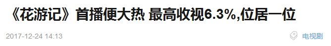 据报道,《花游记》开播当晚就创下了全国标准首播平均5.3%、最高6.3%的收视记录,是有线电台和综合频道同一时段的第一。