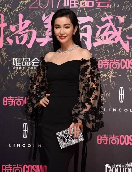 精致耀眼的钻石项链搭配银白的手拿包,笑的十分甜美,可是李冰冰这脸怎么看起来很奇怪?
