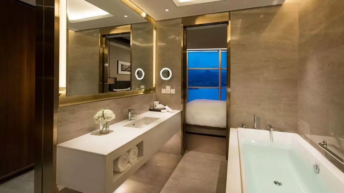 套餐里的房型面积有40平,大面的落地玻璃窗以及窗外的景色是在别处找不到的特色。房间设计合理且人性化,干湿分离的卫浴间设置了推拉门,让空间可以灵活地在私密和开阔之间转换。