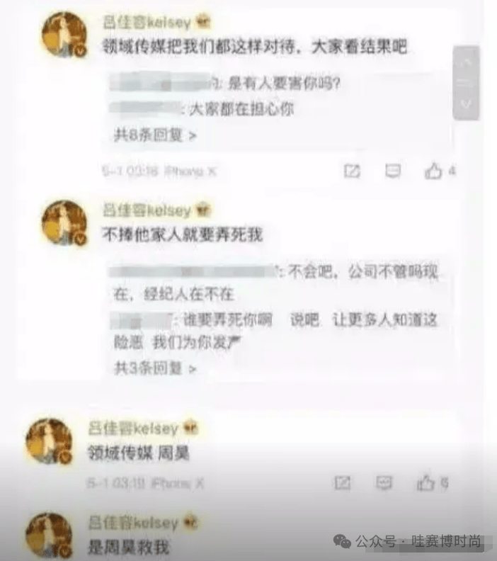 2019年5月1日凌晨,吕佳容在其社交平台上发布了一组令人触目惊心的割腕伤口照片,并连续更新动态,坦陈自己曾经历的艰难困苦。她对社会娱乐圈的不公正现象进行了严厉指责,并直言不讳地表示自己无法承受潜规则带来的压力。此番言论迅速引发了广大网友的广泛关注和深切担忧,许多人担心她可能会效仿已故艺人乔任梁,采取极端手段结束生命。