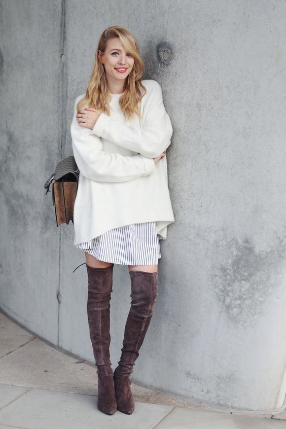 搭配长筒靴绝对是显瘦显腿长的好技巧,打造气质女神。