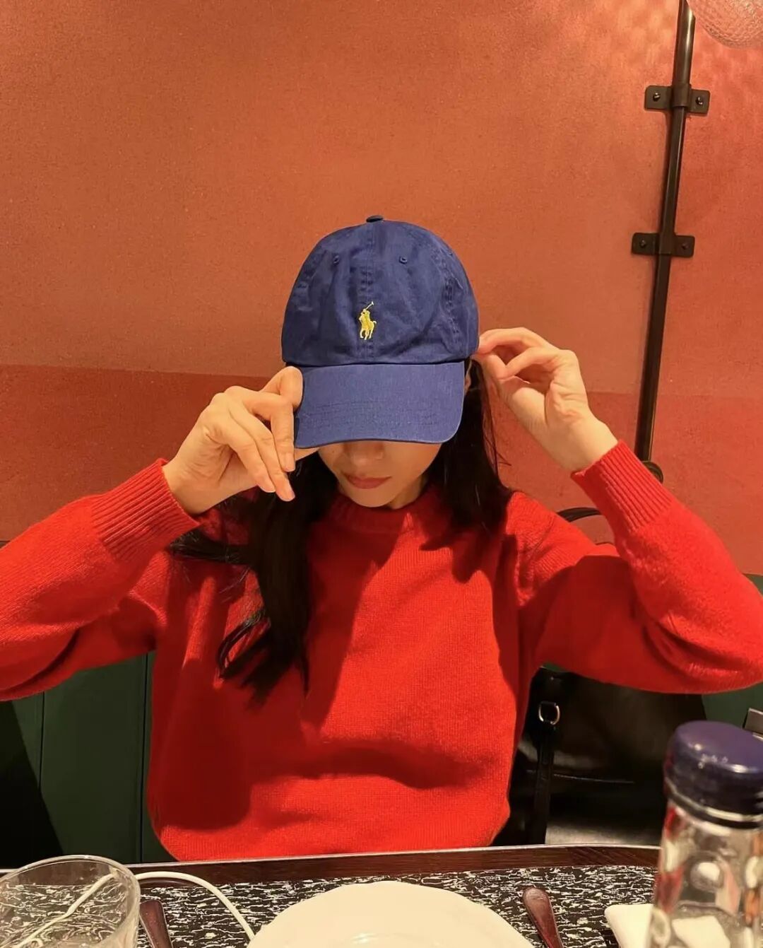挑人的红色针织用海军蓝色棒球帽调和,Polo Ralph Lauren的经典标识点缀与帽身,充盈轻美式风的自在与个性。