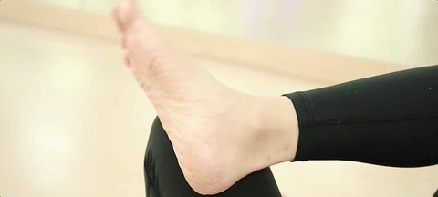 2.吸气时,右脚抬起放在左腿近膝盖的地方,呈“4”字;