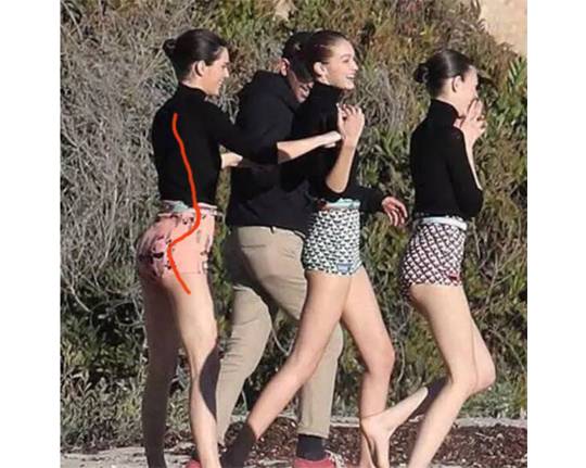 这屁股完全朝着横向发展,下垂,和正面完全不一样的糟糕比例。