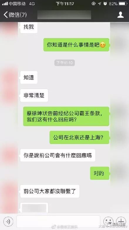 从聊天截图中可以看出蔡徐坤签约的公司或许早已成了空壳公司,上海依海影视文化传播有限公司一些相关的领导人早已明哲保身。蔡徐坤这场官司很有难度,公司都不存在,谈何起诉?