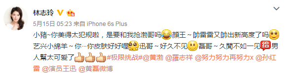 除了多次采访都表示“黄渤那类最适合我”,在极限挑战志玲姐姐也是分分钟抑制不住的迷妹脸!
