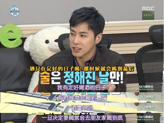 克制的郑允浩给自己定了喝酒的日子,只有特定的日子才喝。