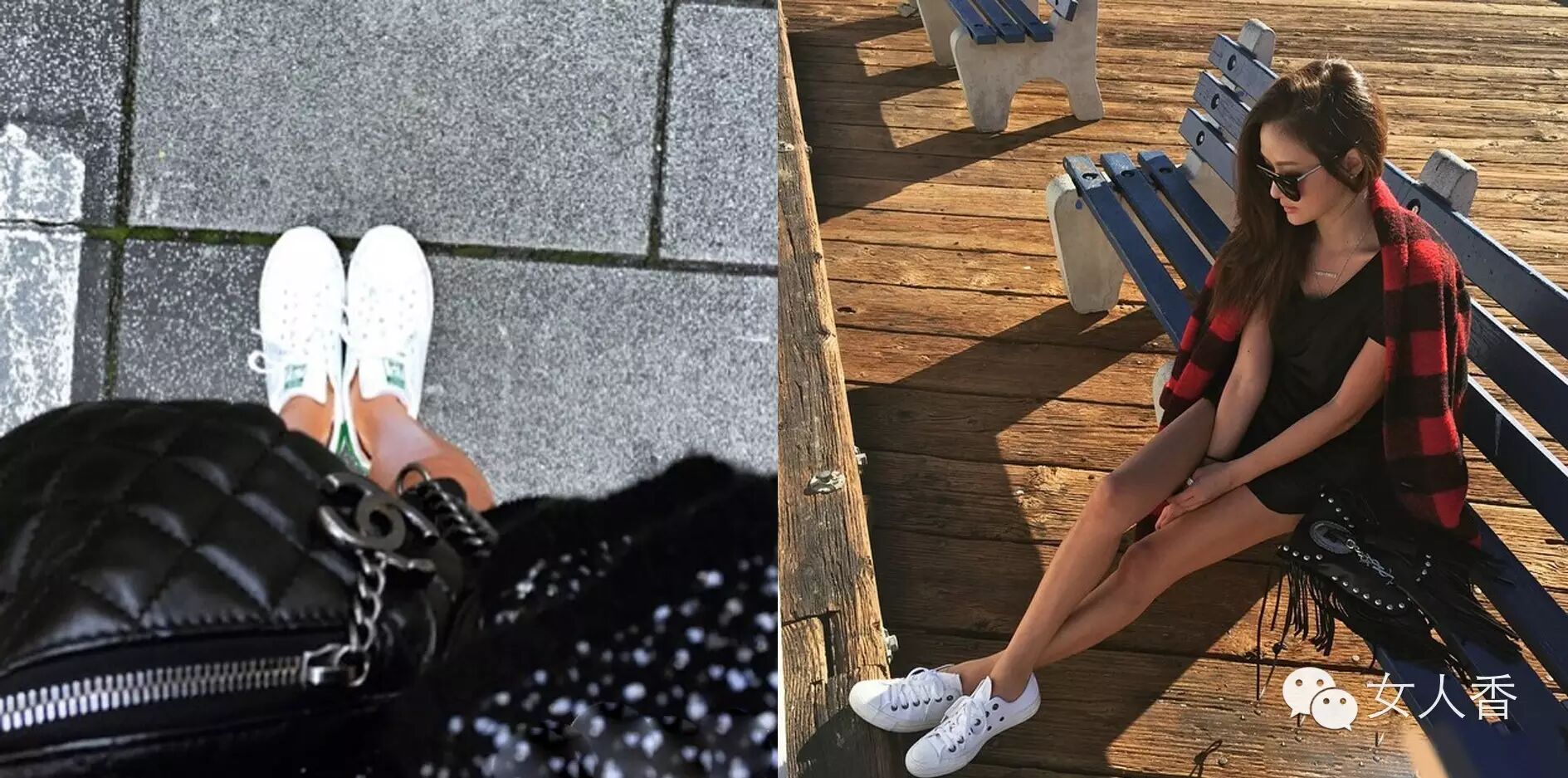 白球鞋可以说是今夏不得不剁手的单品之一,不管啥子年龄阶段都十分的适合呢,像孙芸芸这样搭配上黑色系,既不用花太多时间在每天的搭配上,轻轻松松加入一双白球鞋,欧美范儿走起有木有。