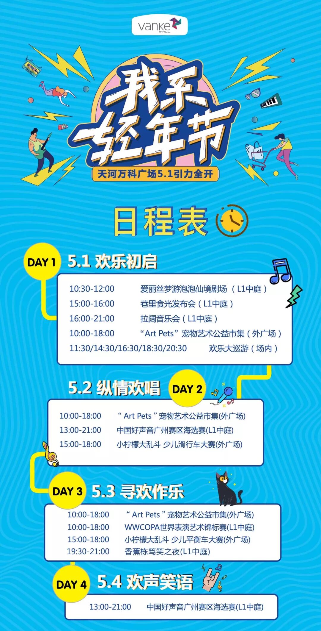 5月1日-5月4日,天河万科广场的开业活动很劲爆!从白天到黑夜,节目满满,让你high足小长假!