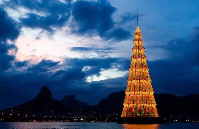 巴西里约热内卢罗德里格环礁上的圣诞树,是全球最大的水上浮动圣诞树。
