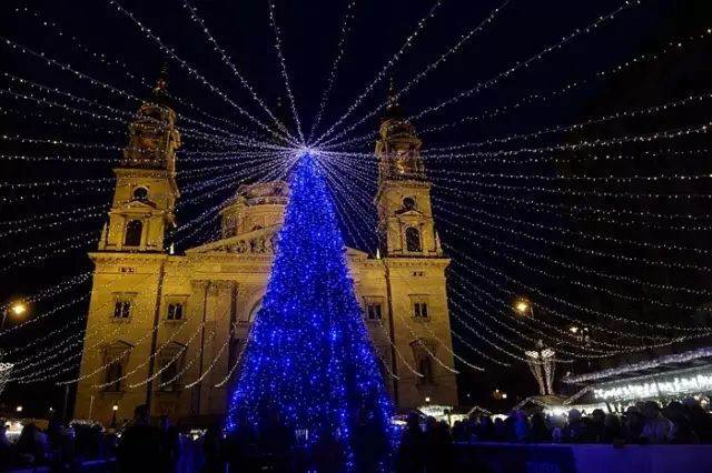 匈牙利布达佩斯圣斯蒂芬大教堂前的圣诞树,当教堂的钟声响起,和爱的人一起,许下一个圣诞愿望,想想也是美美的呢。