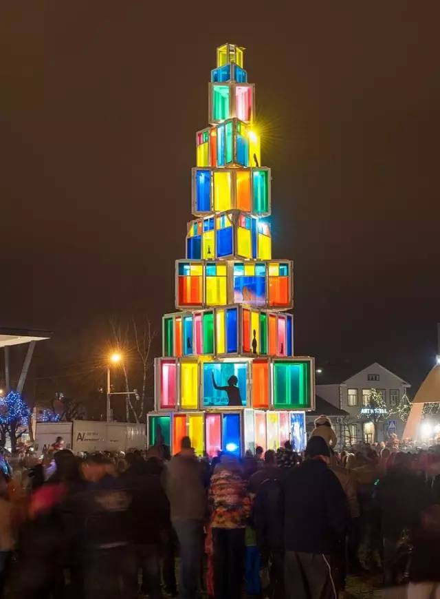 这棵位于拉克韦雷的圣诞树,主要由121个当地老房子的旧窗户组成,非常时尚炫目。