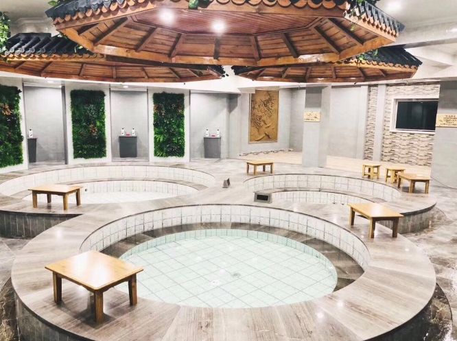 本店20年用水全部来自兴城天然温泉水!汗蒸区岩磐浴,巴基斯坦盐屋均为高端先进的设施设备,多项服务免费提供,并与辽阳天利沐浴有限公司强强携手,贴心优质服务,让您满意舒适!