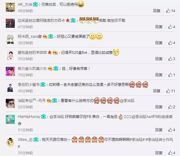 但是话说回来,尽管表白的花样在女生心中牵涉到“我在你心里到底重不重要”的人生大命题,但总的来说还是分人的。妹子们都是肤浅的,在“小鲜肉”的美好肉体前,什么方式方法都是其次,就只要给她一打颜好多才、腹肌饱满的李治廷就好。
