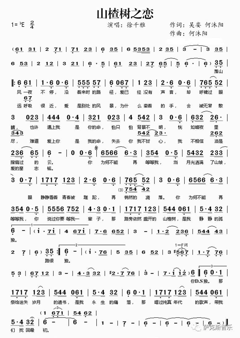 像旧得发黄的书页还在牢记着过去的故事,如风一样的旋律吹拂上心,徐千雅感性的歌声悄悄临近,从耳朵刺进心底,婉转处如夕阳余辉,激昂时又似骄阳刺眼。从平静到高亢自然而然,技巧已经炉火纯青到不需要我们去赞美,只需去感受那用灵魂唱歌的声音,是滴着泪水在倾述。“你为何不能/再等等我/你说过你要等我一辈子/那路旁依然盛开的山楂树/是我静静的孤独。”