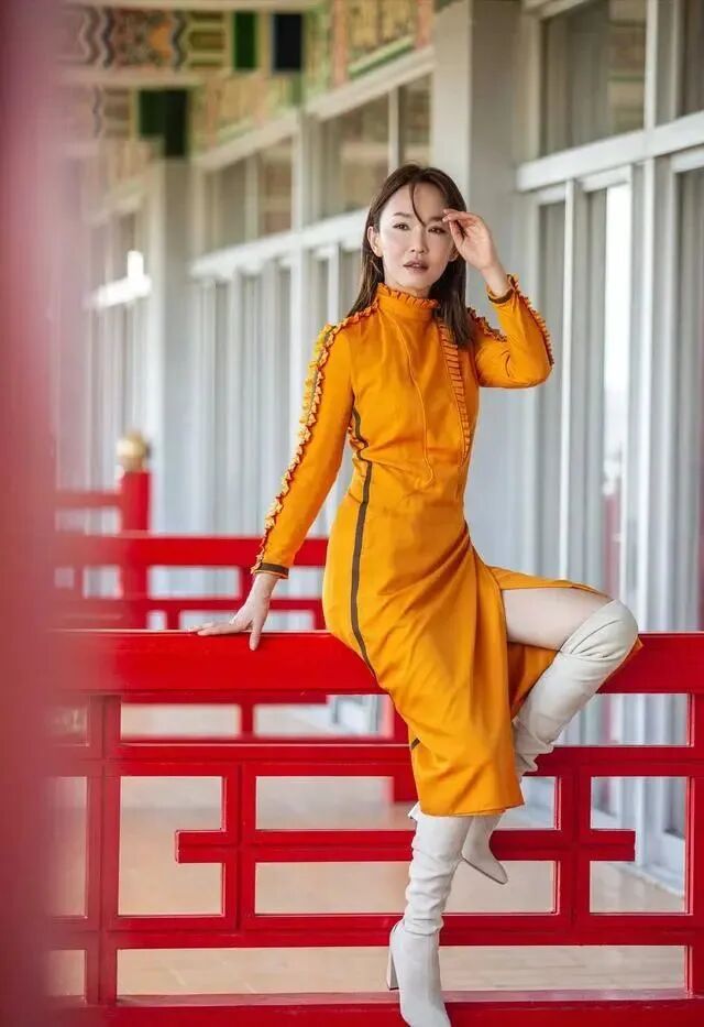 一条橙色的长裙穿在身上完全就显出了她以前的那种魅力呀,这脸还是经不住细看的,因为这个脸现在看起来有一种说不出来的僵硬感。没有那么的自然和真实了啊!
