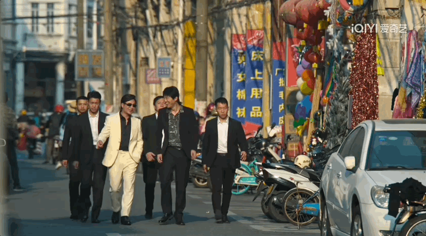 彼时夜已深,他正和几位手下藏匿在僻静小巷中的面包车里。摄影机扫过一众小弟,定在大哥正脸。