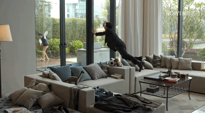 但豪宅里的他却是妻管严,和屋外的儿子打招呼时还会直接穿着皮鞋跳上沙发,大喊大叫。