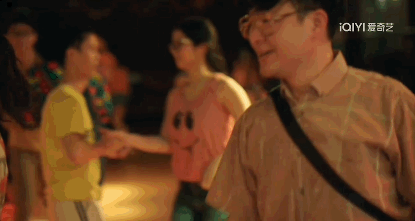 他们偷偷来了舞厅,在激情的音乐和暧昧的灯光里,他大腹便便,解放自我,尽情挥洒,毫无章法,既快乐,又好笑。
