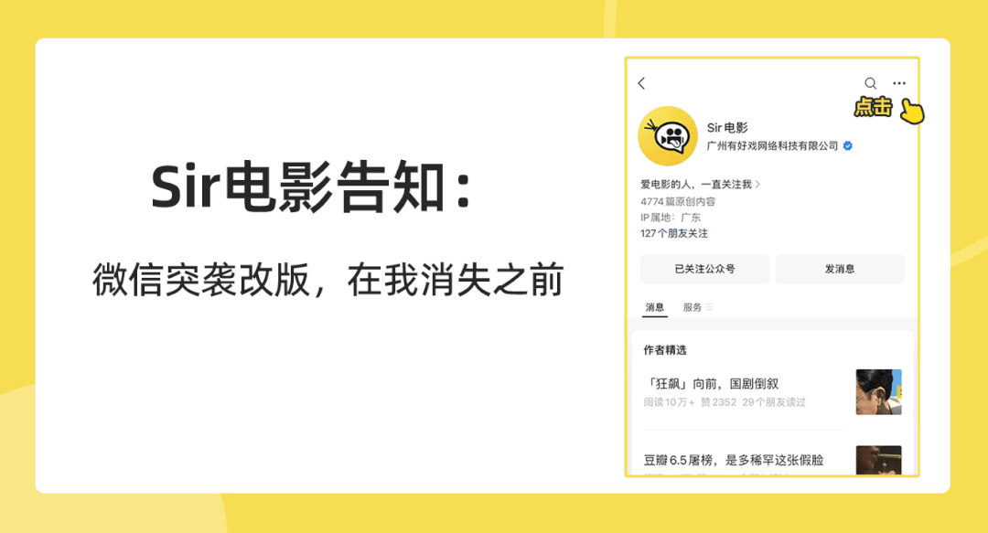 为防止你看不到Sir的文章,可以在主页点击右上角的“…”,把“Sir电影”设为星标。