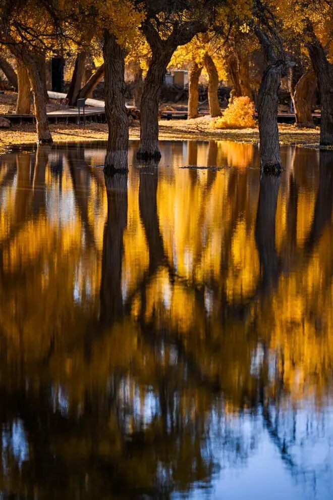 一棵一直倒映在水中的古槐和楸树