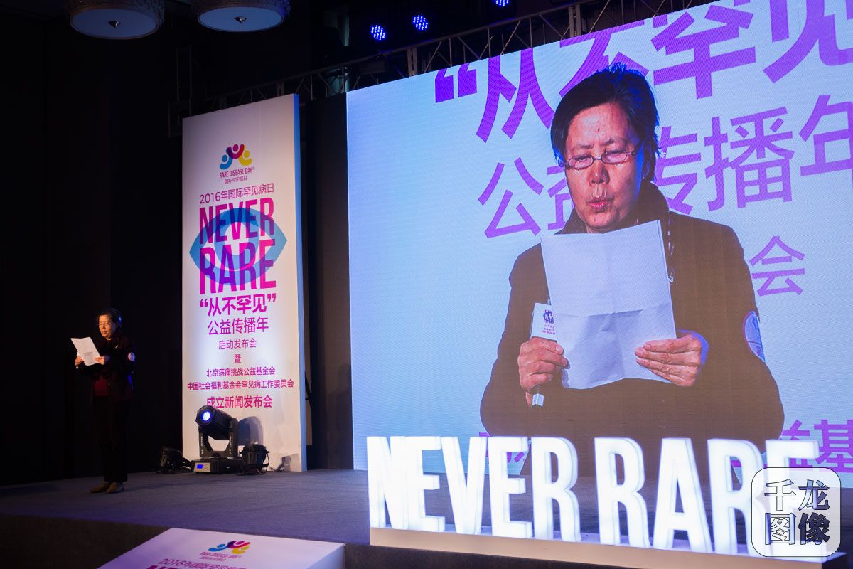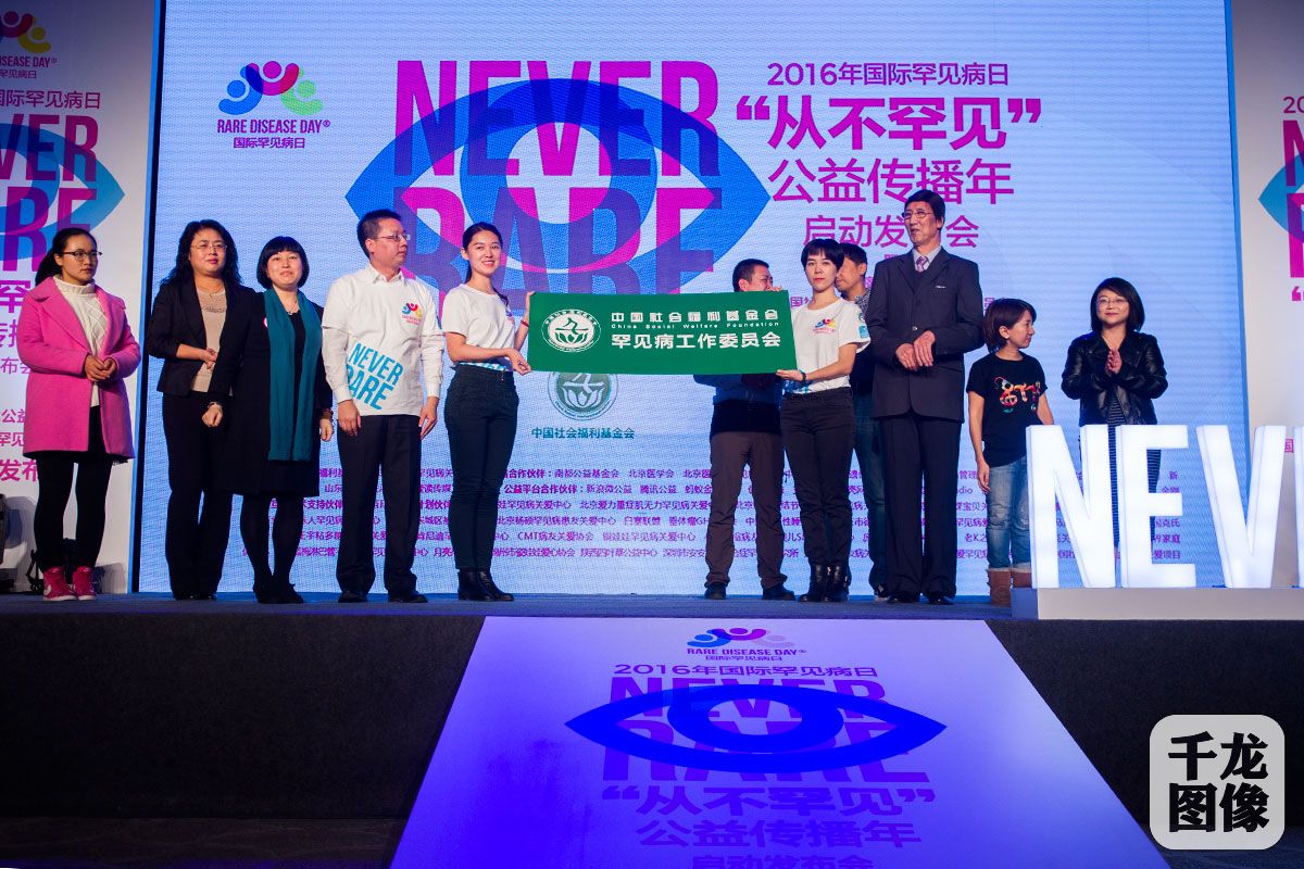 由瓷娃娃罕见病关爱中心、中国社会福利基金会主办“从不罕见”公益传播年启动发布会。图为罕见病工作委员会揭牌仪式现场。