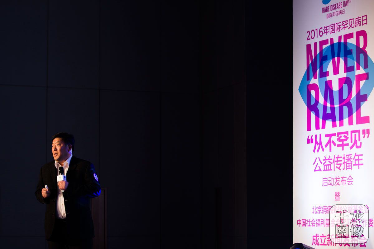 北京医学会会长金大鹏在台上表示,医学界将全力支持基金会、瓷娃娃中心及罕见病相关公益事业。