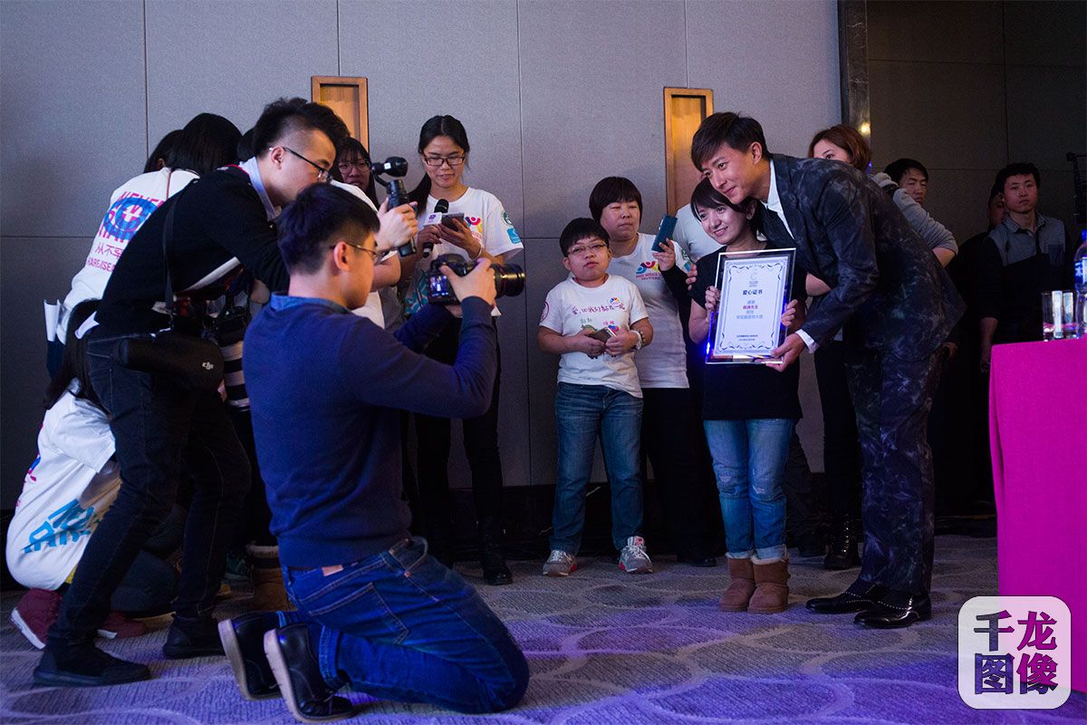 韩庚同瓷娃娃罕见病关爱中心主任王奕鸥在台下合影