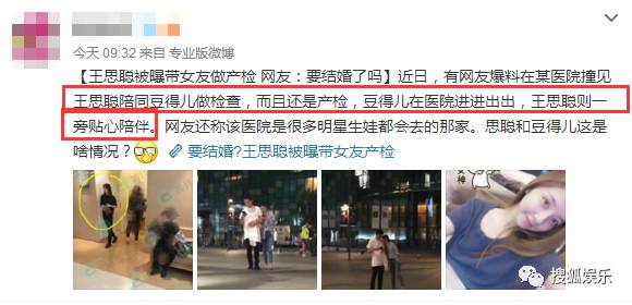据网友的爆料称,三月底在医院撞见了王思聪和豆得儿,做的还是产检,然后王思聪还一直贴心的陪着豆得儿!