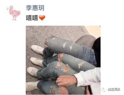 看思聪一手搂着豆得儿,俩人穿着情侣裤情侣鞋,豆得儿的中指上还戴着钻戒,加上配文的“嘻嘻”和心,俨然一副好事将近的样子!