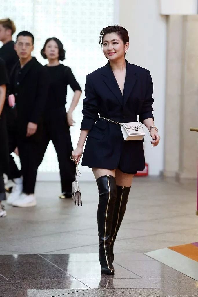 对于女星都喜爱的。期中来说,任家萱这身搭配可以说很大胆了,长款的西装外套,直接当裙子穿,把斜挎的包包。别在腰间显出小蛮腰,虽然身材很好,可是脸上岁月的痕迹却非常的明显,