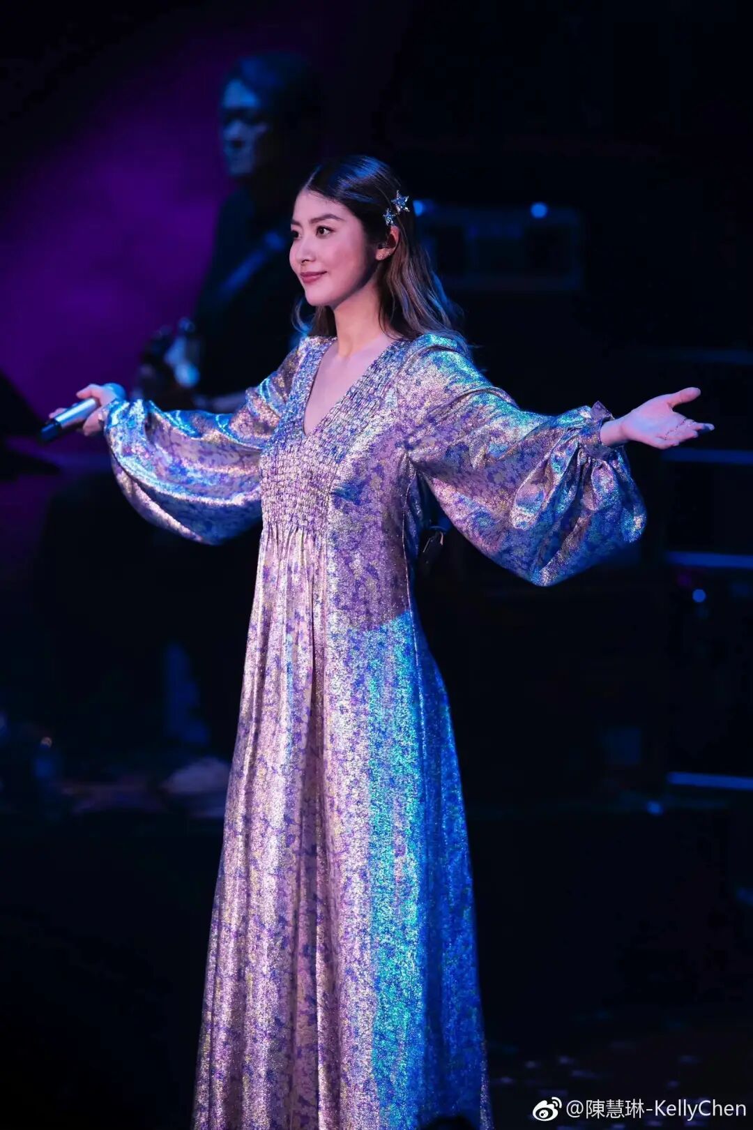 金灿灿的连衣裙搭配星星头饰,俏皮又亮闪闪,让人眼前一亮。