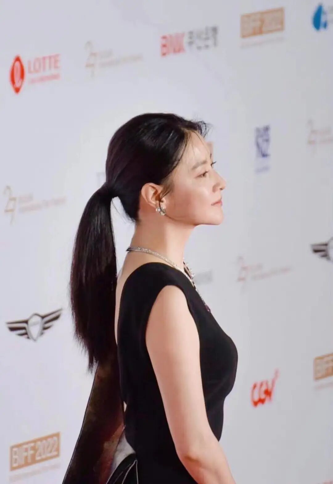 众所周知韩国的红毯生图是十分考验状态的,脱离了精修下的明星面临着更加考验五官和状态的挑战。但是摄影师们抓拍的李英爱的每一帧状态,都十分明亮又无死角,美感由内而外散发出来,衣品上也十分追求质感。身着一套无袖黑色长裙,背部还有闪闪发光的面料呼应,搭配高定珠宝,整个人的气质十分大气温婉,在红毯上更加有流光溢彩的感觉。