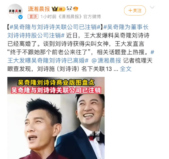 爆料人王大发说刘诗诗终于不再与前老公来往了,两人关联的公司也已经注销。