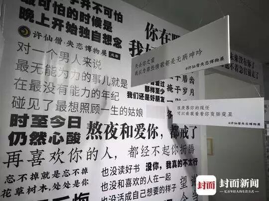 一进门,便可看到展厅四周挂着各种情感语录,转身就是一句鸡汤,让人陷入到“扎心”的氛围里。