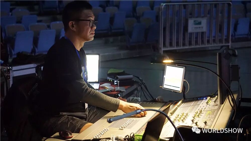 虽说是巡演,但由于场馆的原因,广州站这场无论是舞台、灯光等算是全新的设计。“因为这次的场地内场不设位置,整个延伸舞台就差不多是一个四面舞台了,所以灯光设计上会比之前的场多花了点心思,要照顾到不同方位的观众。”灯光总设计庄福民介绍道: