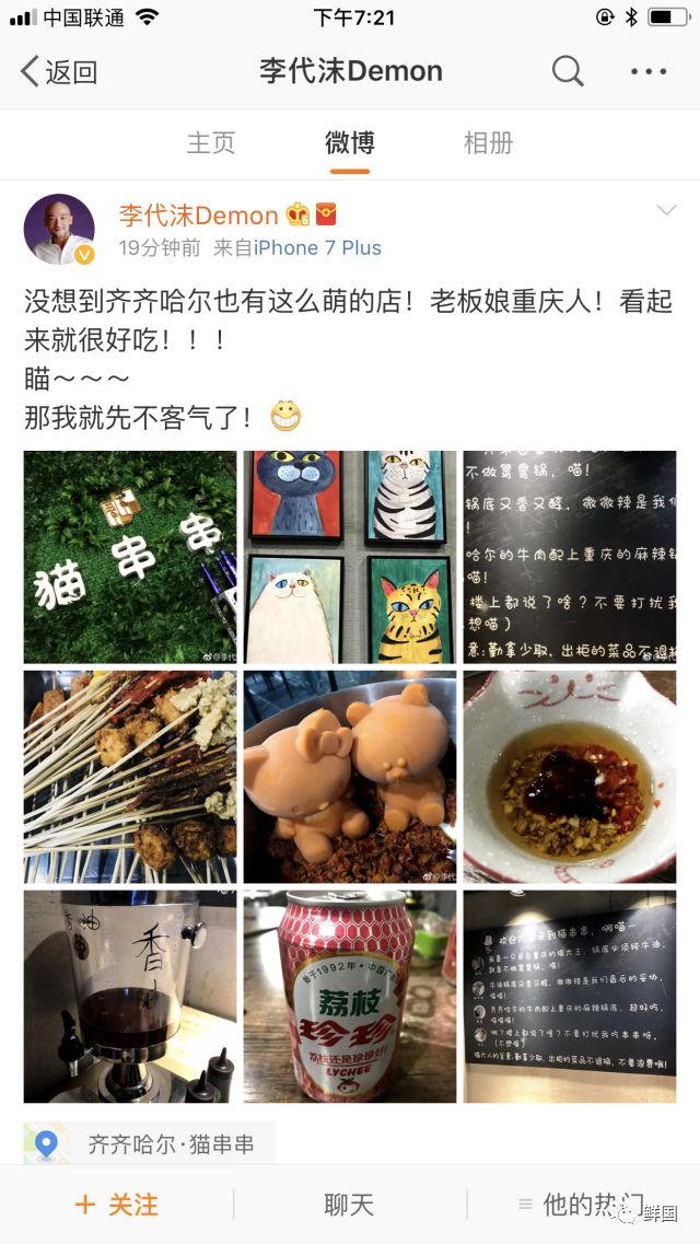 昨天,也就是传说中的大年初五,老白带着李代沫等人去猫串串(鲜国桌)吃饭。下面是被鲜国林雨飞活捉的李代沫~