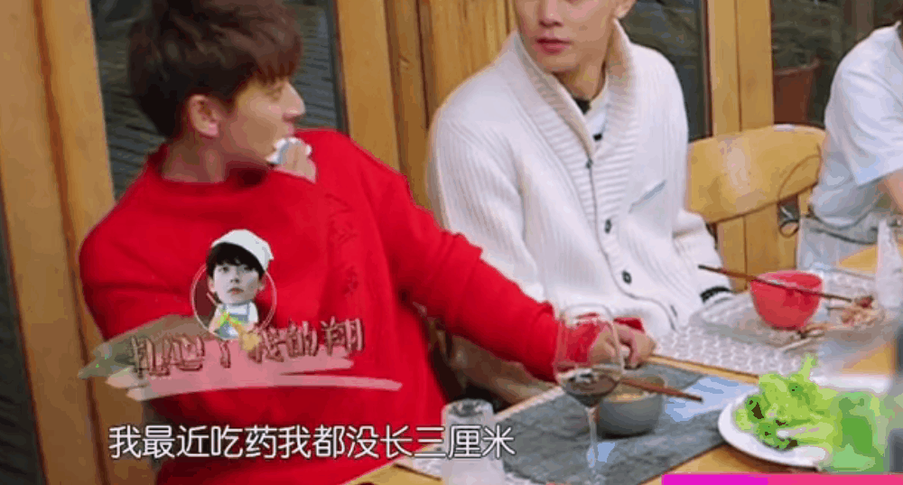 吃饭的时候,随时都不忘拿自己开涮,调侃自己吃药也不长个!