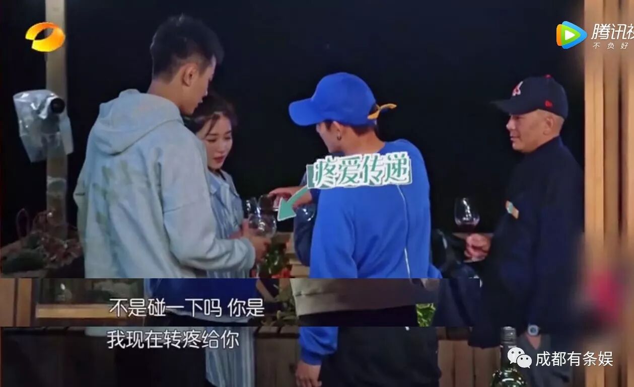 开篇喝酒,王珂在大家喝酒的时候,倒给了陈翔,陈翔转身,就倒给了纪凌尘,哈哈美其名曰“疼爱传递”: