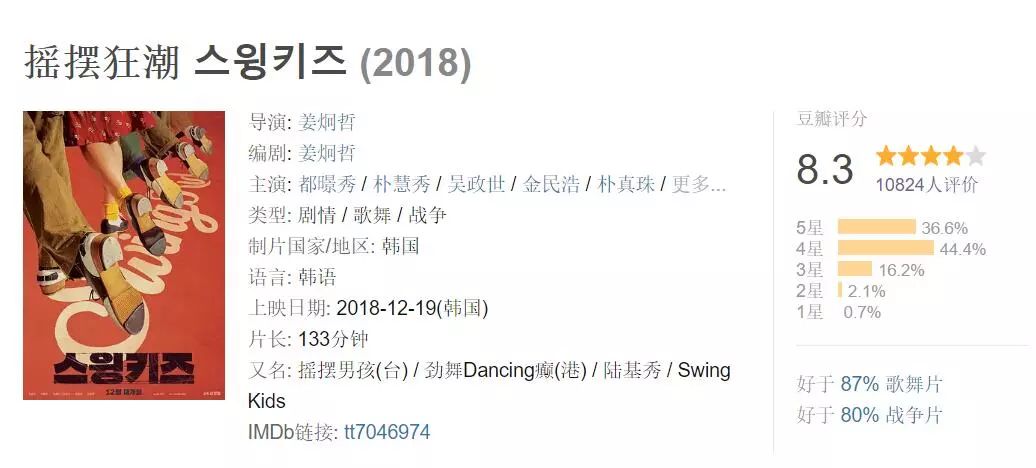除此之外,像《如果爱》《黑天鹅》《舞出我人生》《爱乐之城》等歌舞片也是经典中的经典,然而在去年年底,有一部韩国歌舞片,以另类的青春和励志让人眼前一亮。
