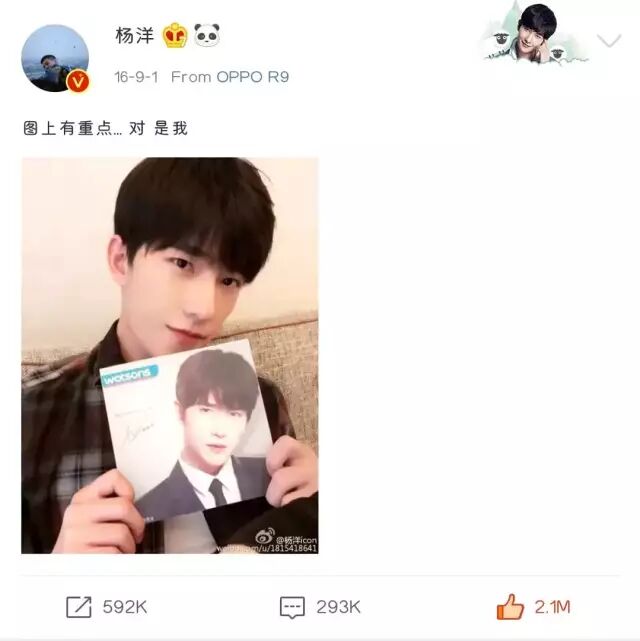 事情是这样的,昨天晚上杨洋在微博上晒出一张自拍,戴着黑超墨镜的他,是真实地持帅行凶了。