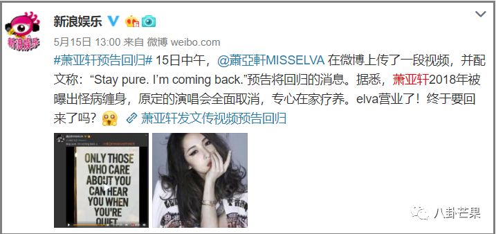 但是,我们在等来她的音乐之前,先等来了这样的新闻↓↓......可以!这样的回归方式,很“萧亚轩”。
