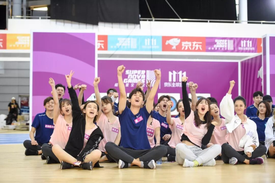 原本活跃在舞台上、影视中光鲜亮丽的年轻艺人们,统一着粉、蓝色运动装,跟着教练一次次练习,而且因地域划分激发出的团结心和胜负欲,迅速拉近艺人们的距离,短时间内完成团队重组,唤起家乡荣誉感。
