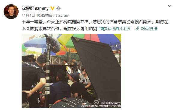 之后他就和无线结束10年宾主关系,离开了TVB!
