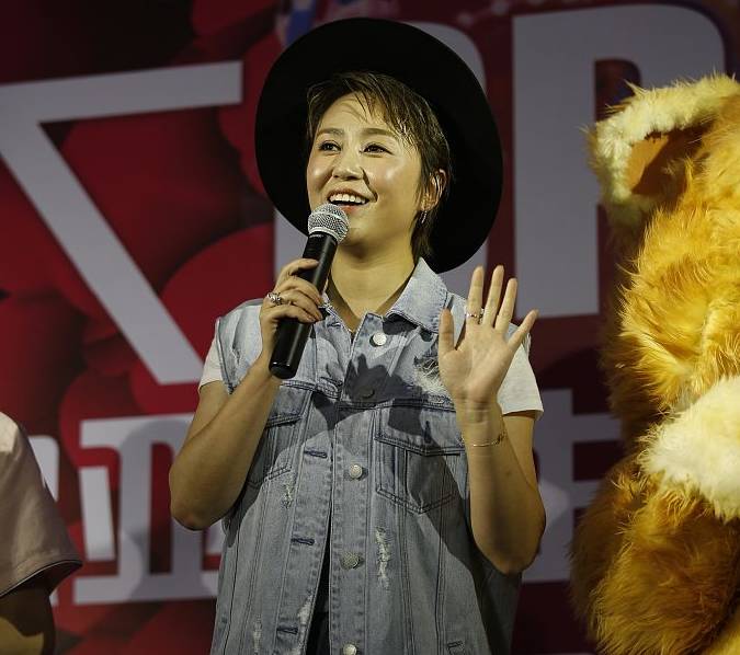 花姐马丽参加活动的时候,除了土气的牛仔,还有...反光的脸。