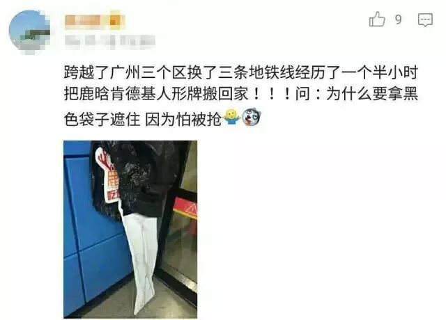 比如,这位同学你为什么要……跨越广州三个区换了3条地铁历经一个半小时,把鹿晗肯德基的人形牌搬回家呢?!