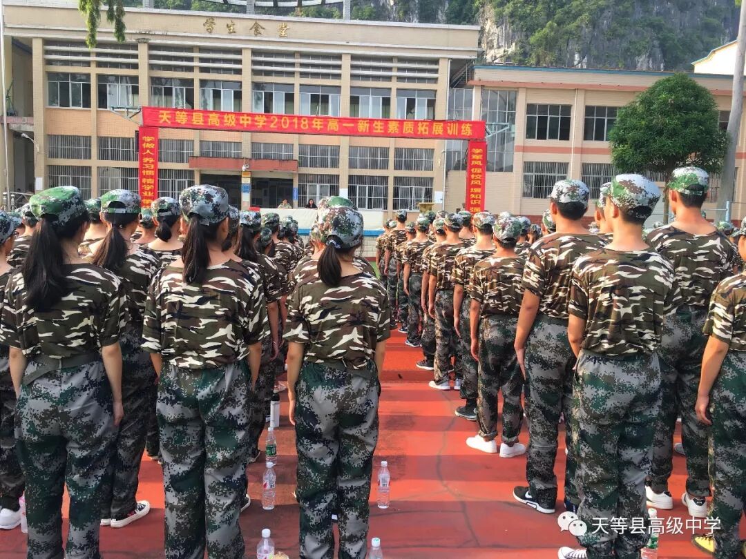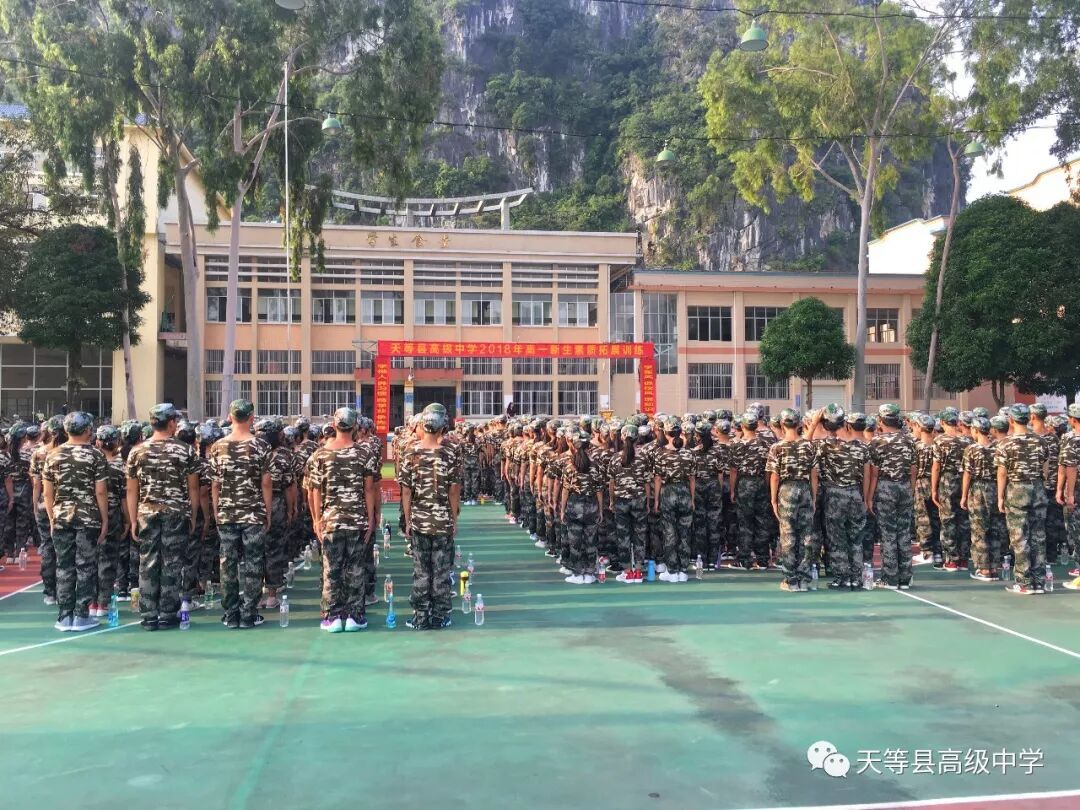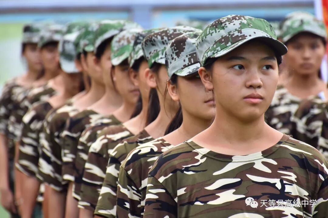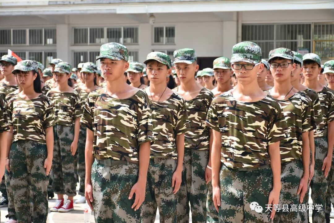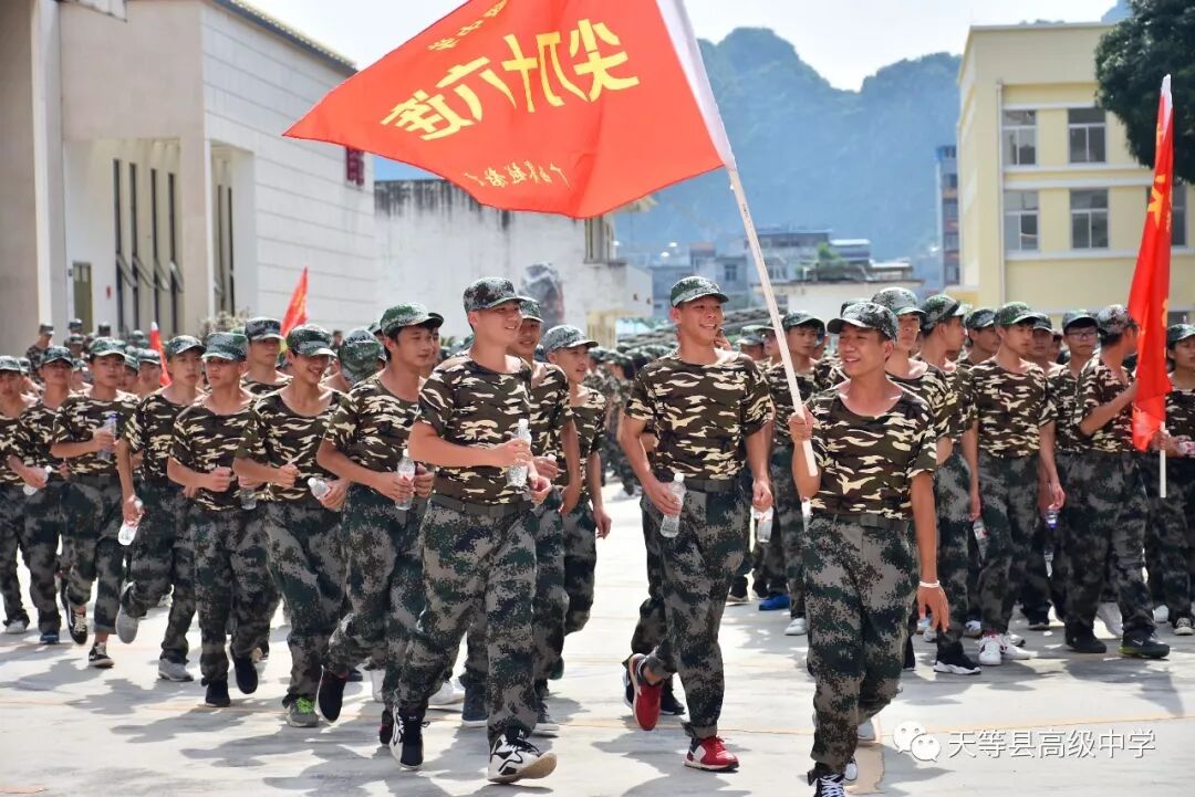 头顶八月末即将逝去的骄阳,迎面而来的是金秋九月清爽的秋风。他们共同聚在了天等高中,他们即将在这里翻开人生中崭新的一页,迎接属于他们自己绚丽多彩的的未来。为了更好地适应新学校的生活,同时磨炼自己的身心和意志。因此,他们在正式上课之前开始了七天的军训。