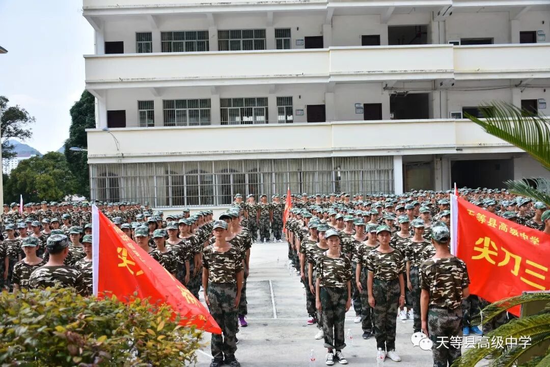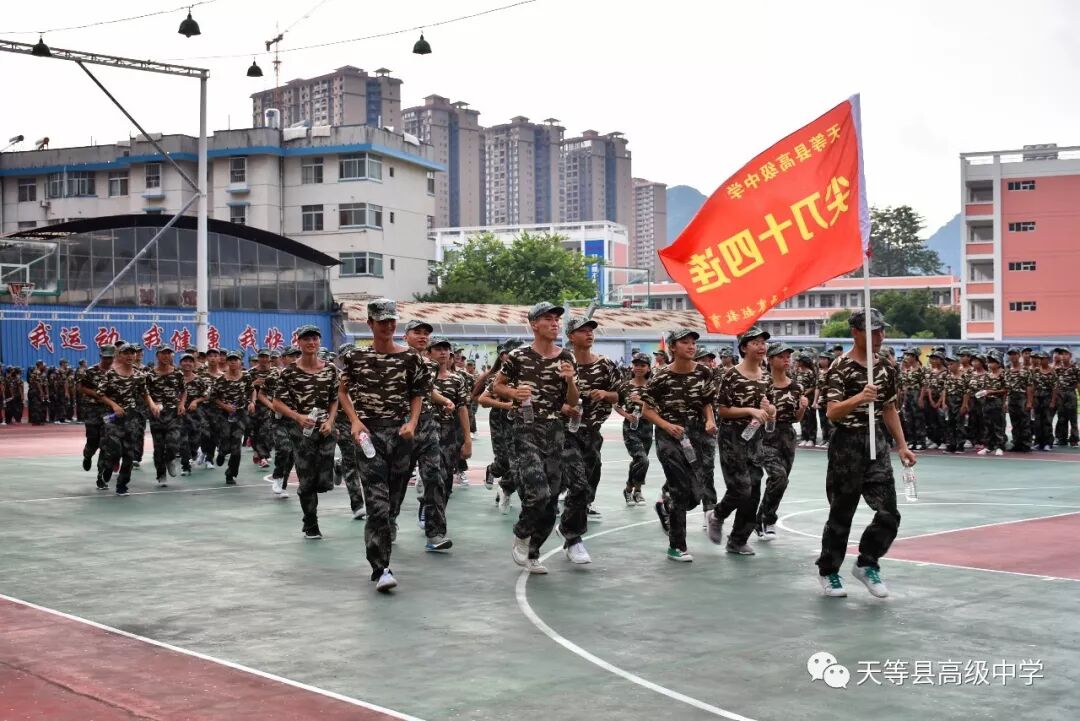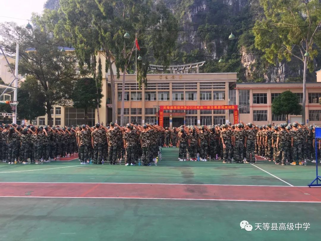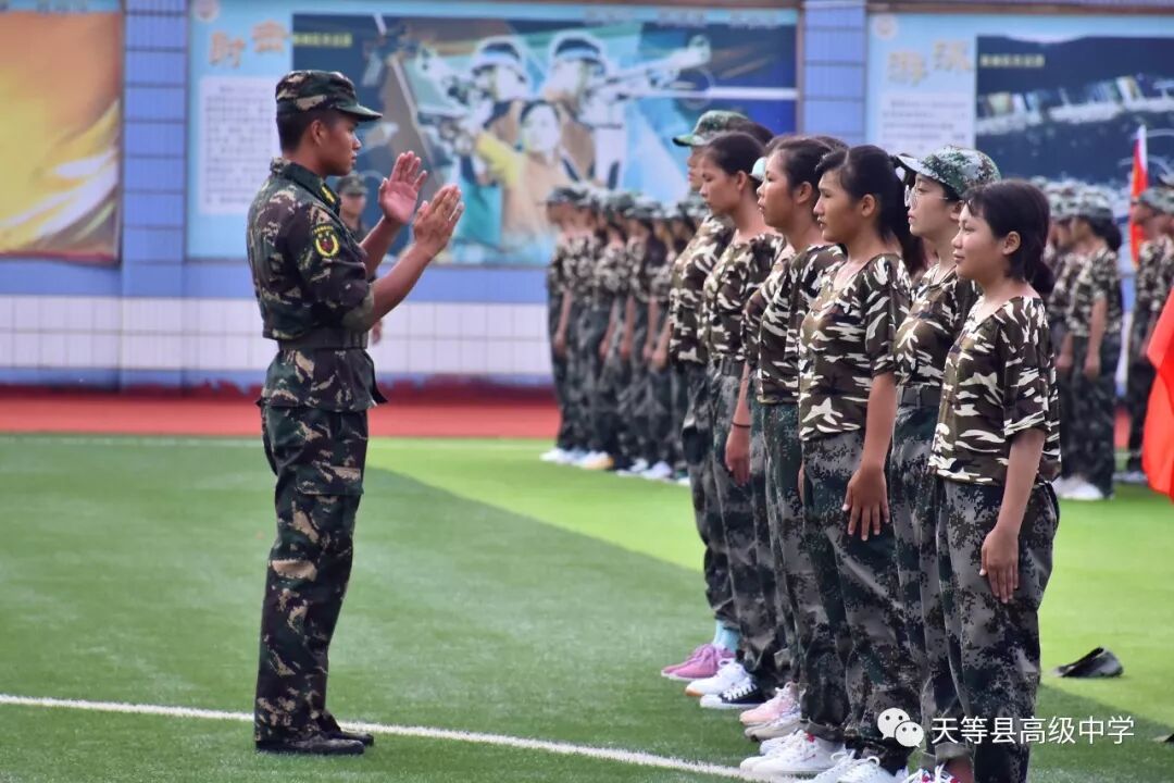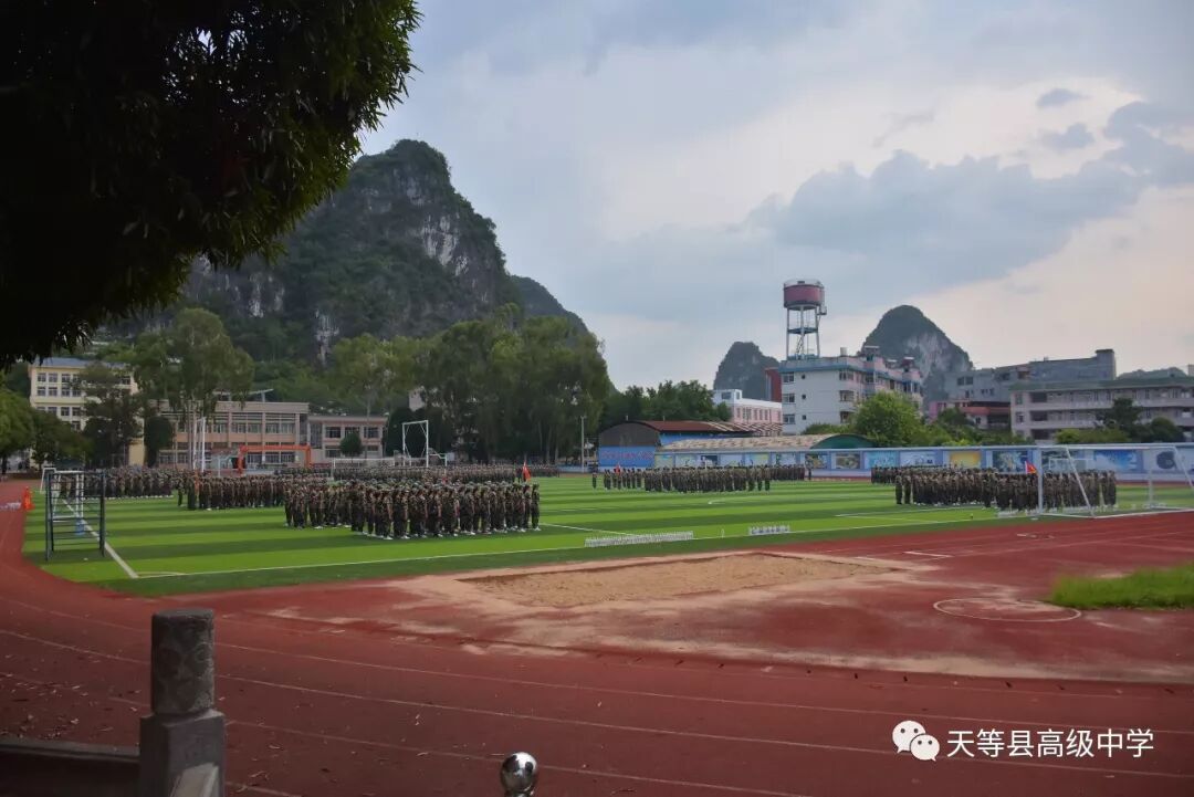 头顶八月末即将逝去的骄阳,迎面而来的是金秋九月清爽的秋风。他们共同聚在了天等高中,他们即将在这里翻开人生中崭新的一页,迎接属于他们自己绚丽多彩的的未来。为了更好地适应新学校的生活,同时磨炼自己的身心和意志。因此,他们在正式上课之前开始了七天的军训。